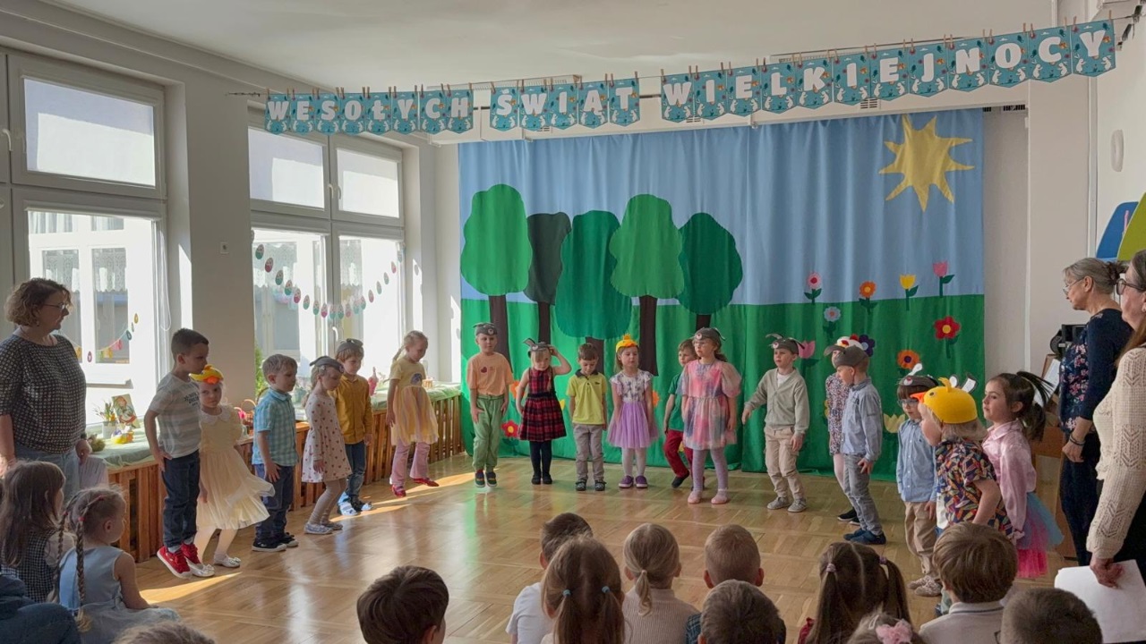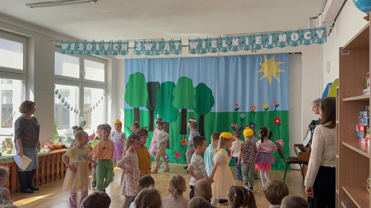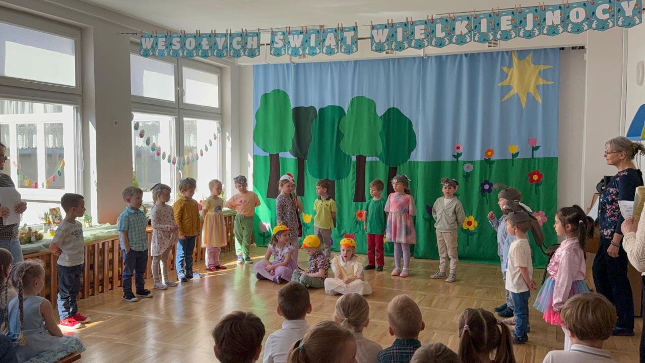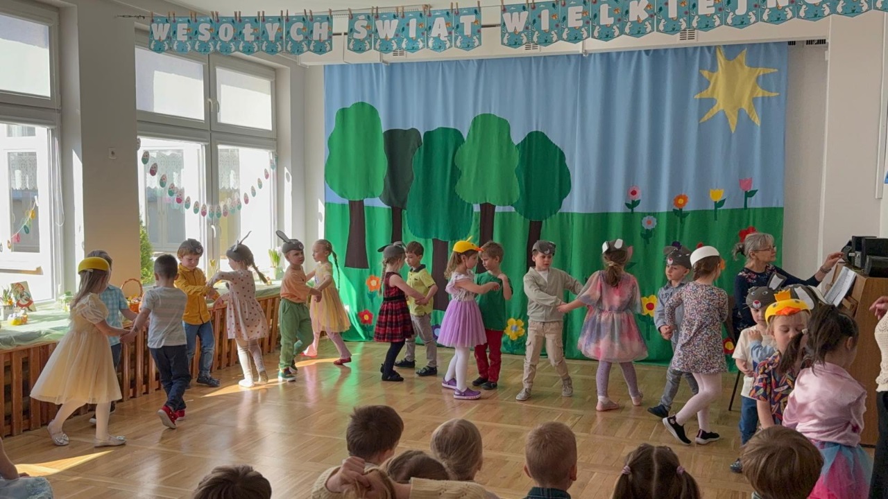 Dzieci z ogromnym zaangażowaniem wcieliły się w swoje role, wprowadzając widzów w świąteczny, pełen radości i wiosennej energii nastrój. Nie zabrakło pięknych strojów, muzyki oraz uśmiechów, które rozgrzały serca wszystkich obecnych.