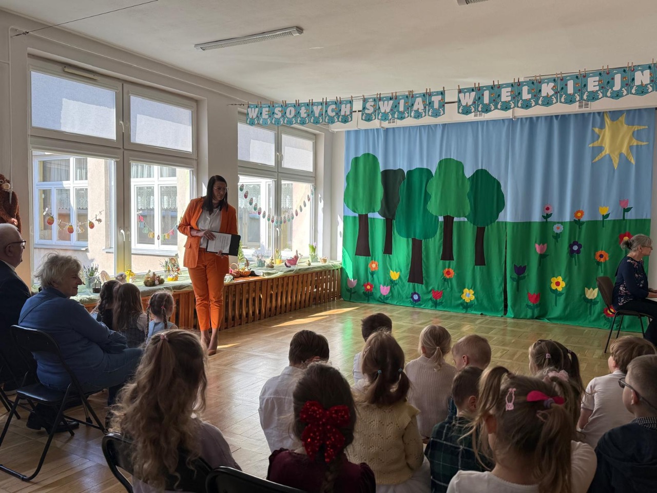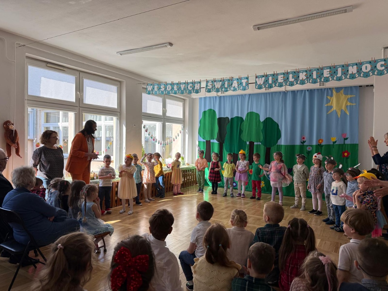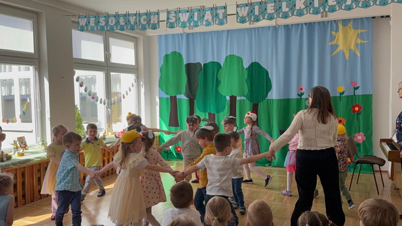 Dzieci z ogromnym zaangażowaniem wcieliły się w swoje role, wprowadzając widzów w świąteczny, pełen radości i wiosennej energii nastrój. Nie zabrakło pięknych strojów, muzyki oraz uśmiechów, które rozgrzały serca wszystkich obecnych.
