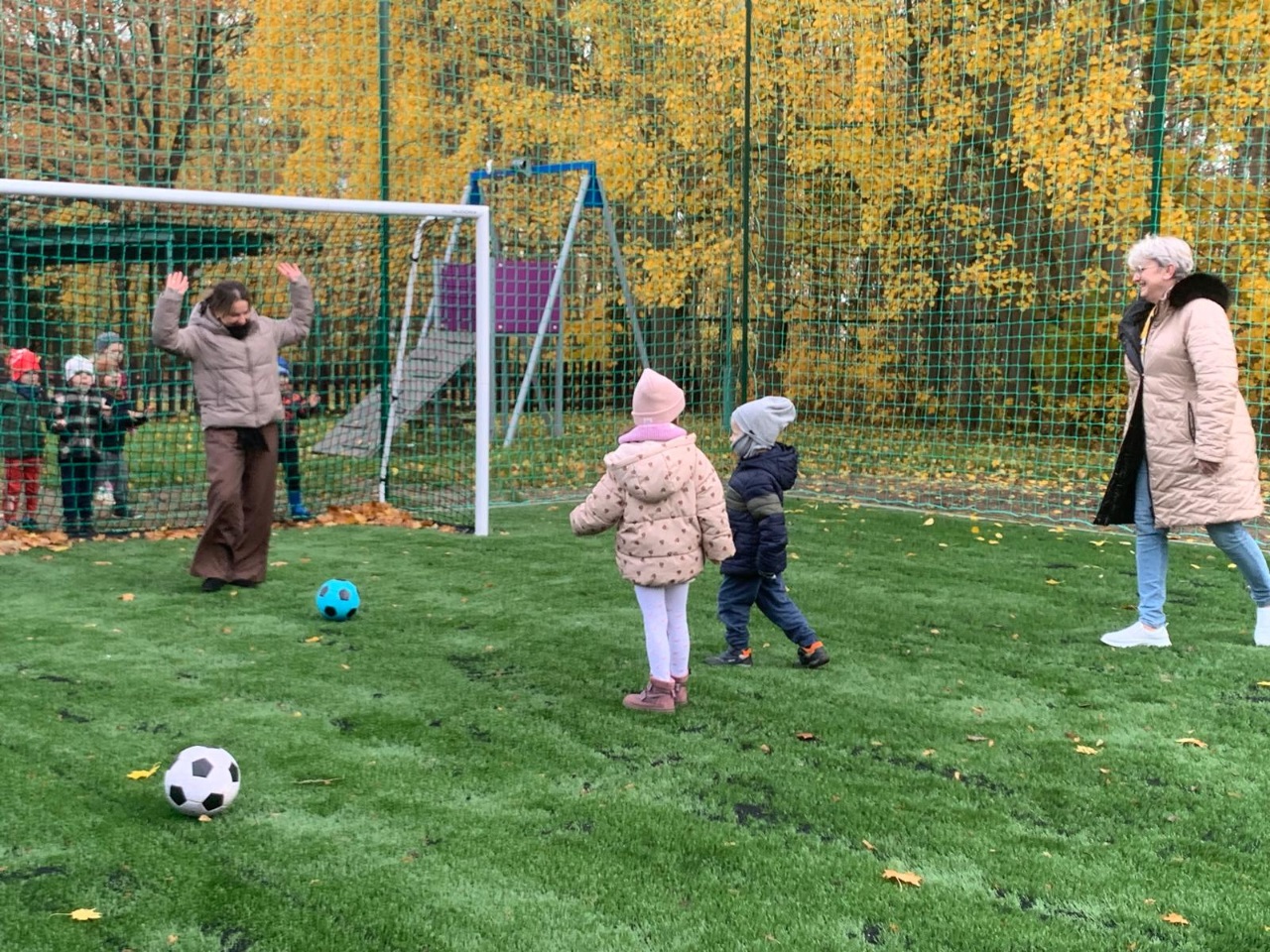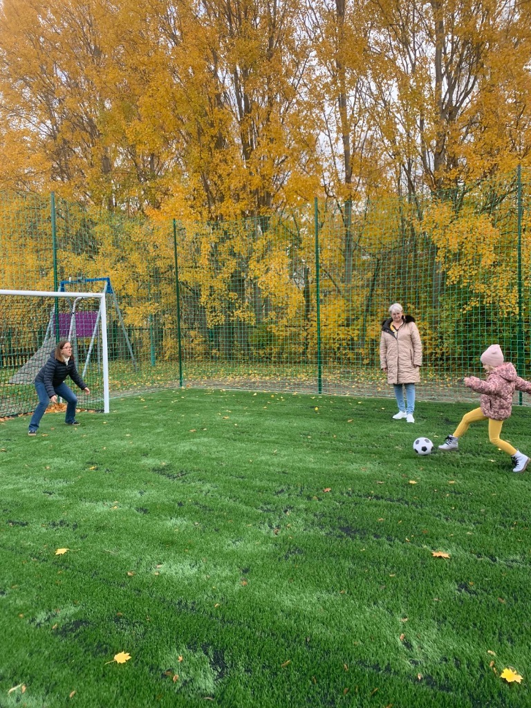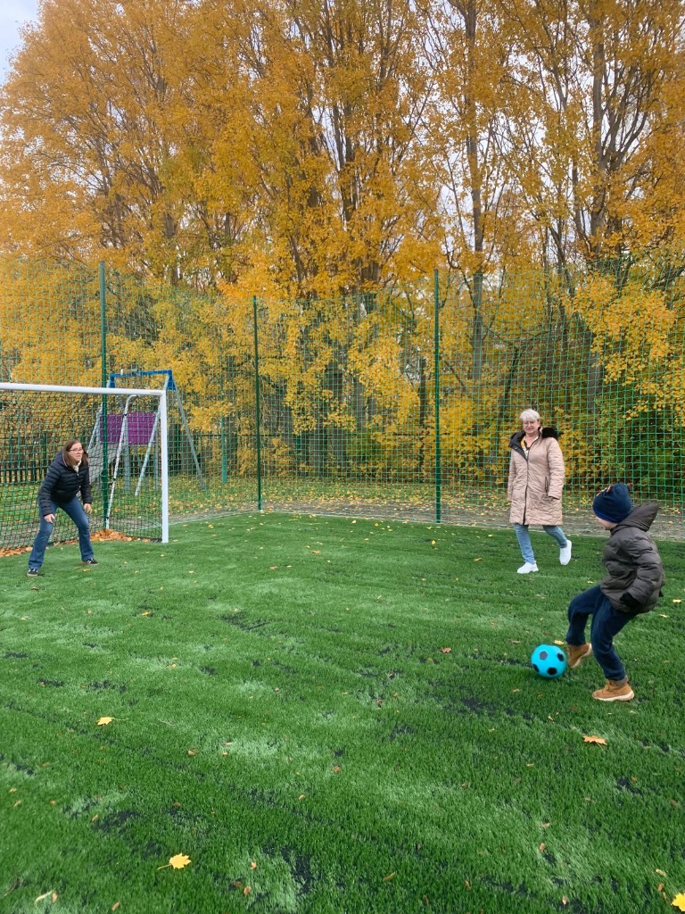 Po części oficjalnej każda grupa miała okazję sprawdzić swoje piłkarskie umiejętności – dzieci próbowały strzelić gola swojej nauczycielce, co wywołało mnóstwo emocji, radości i śmiechu. ⚽😁