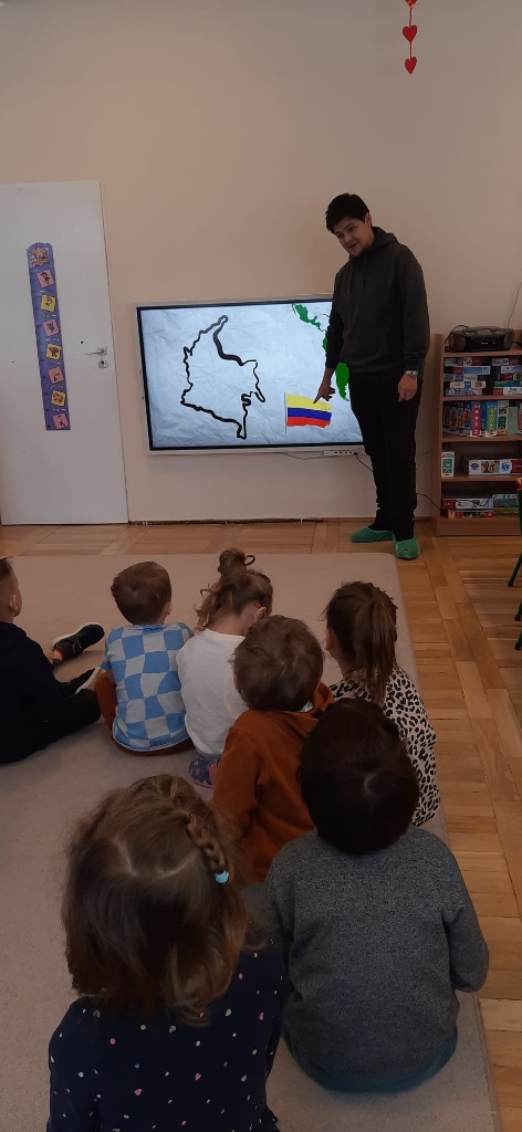 Zajęcia z Tatą Anthonego z grupy III - „Gdańskie Lwiątka”. Zapoznanie dzieci z kulturą Kolumbii i językiem hiszpańskim.